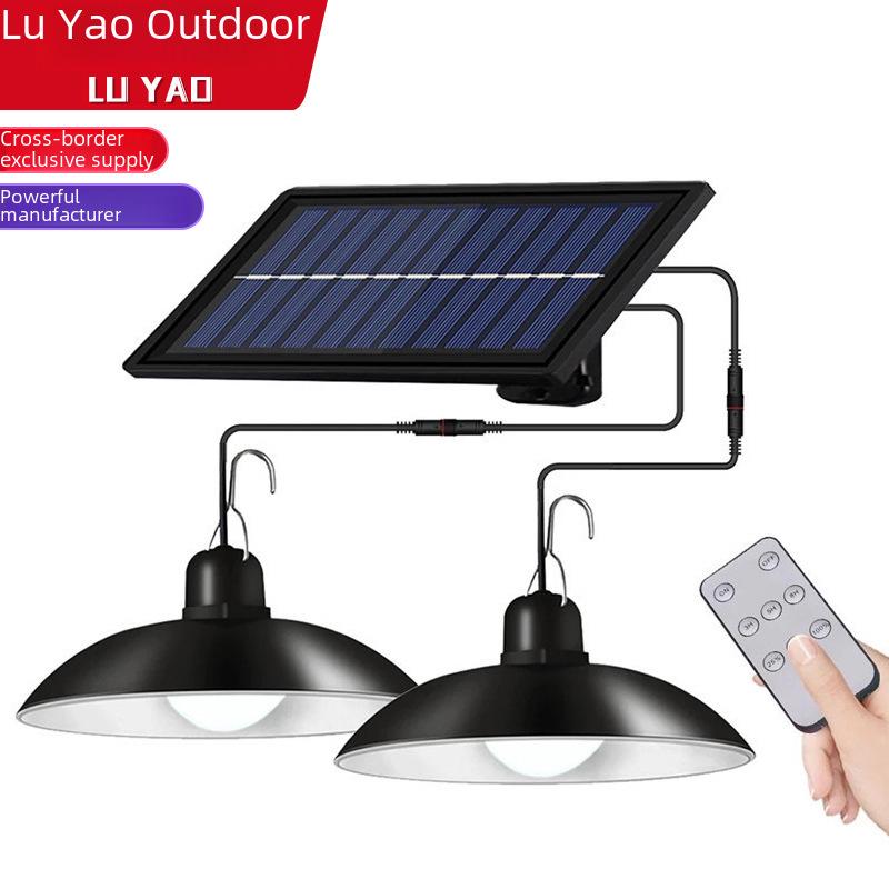 Уличная/внутренняя солнечная светодиодная люстра с ретро-лампой, уличный фонарь с дистанционным управлением (Одинарная/двойная головка)