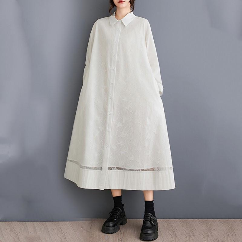 Длинный рукав Плюс размер Хлопковая сетка винтажный цветочный новый в платьях для женщин повседневный свободный весна осень платье-рубашка