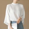 Модная женская блузка 2024 года, осенняя туника, топы, повседневные, воротник-стойка, расклешенные рукава 3/4, офисные элегантные рубашки, свободные блузы