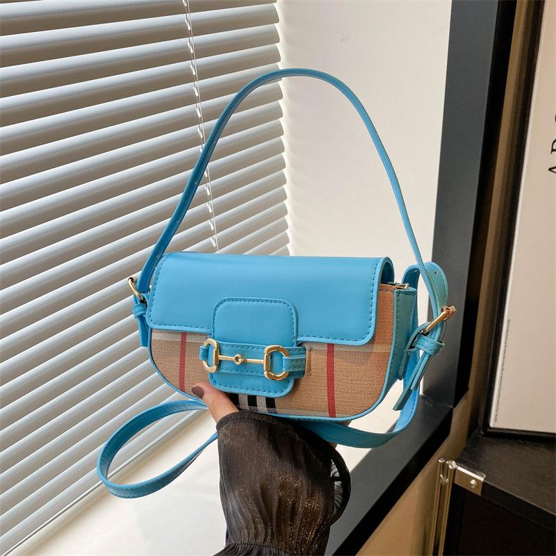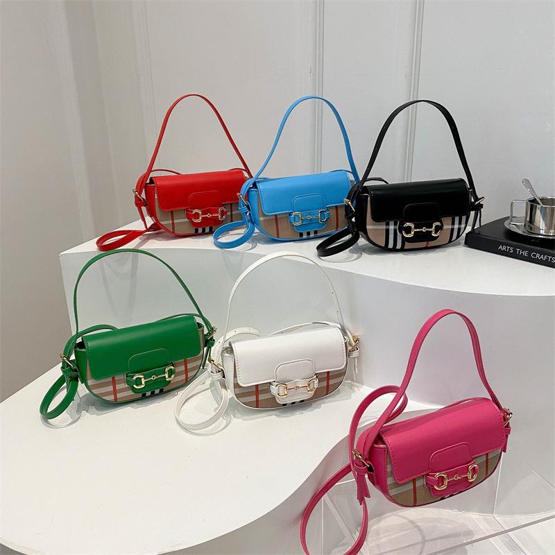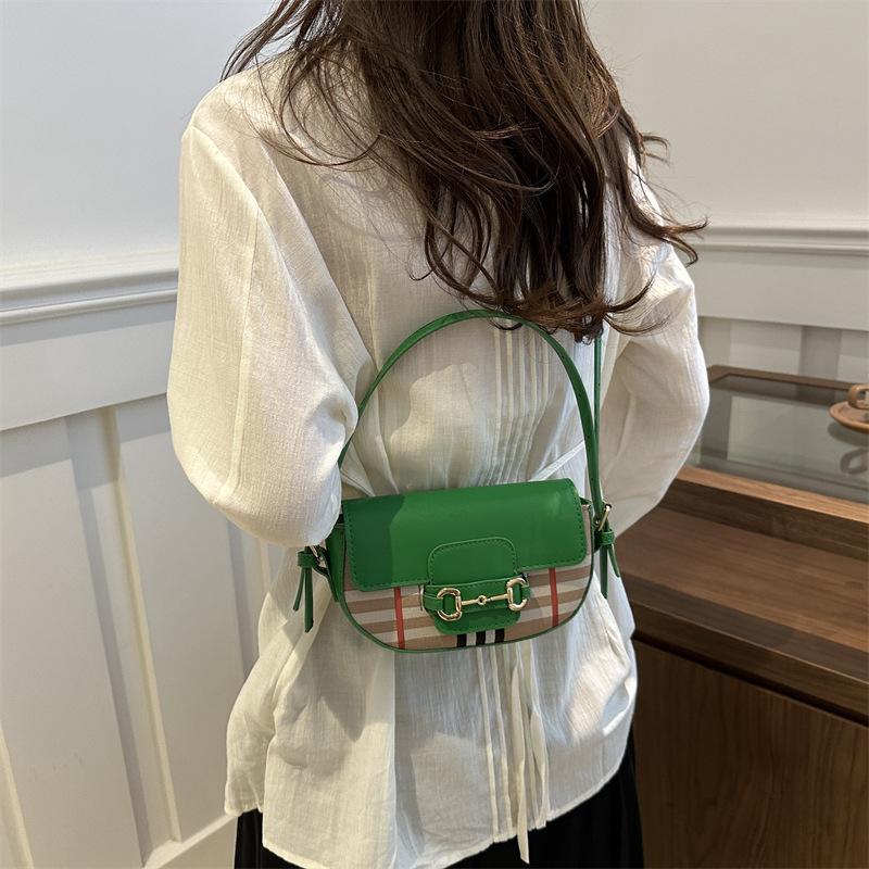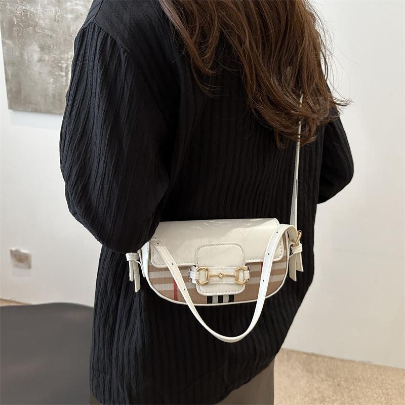 Популярная сумка-седло через плечо, женская сумка 2024 года, новинка в европейском и американском стиле, контрастная клетчатая универсальная сумка на одно плечо под мышкой для женщин