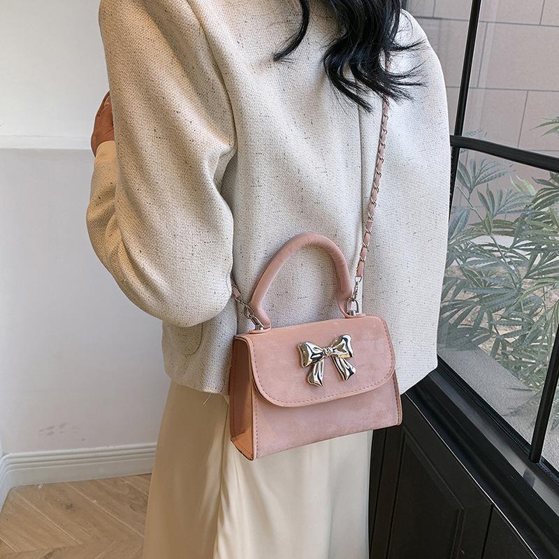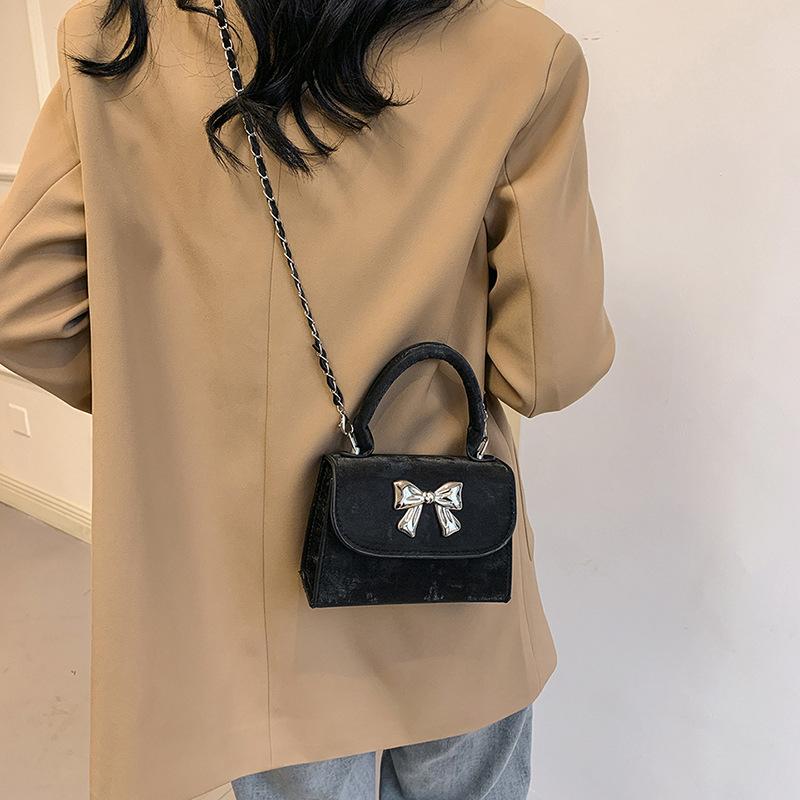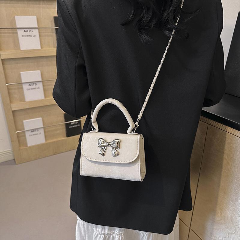 Цепочка с бантом и текстурой Маленькая квадратная сумка Женская модная сумка через плечо 2024 года Универсальная сумка-мессенджер