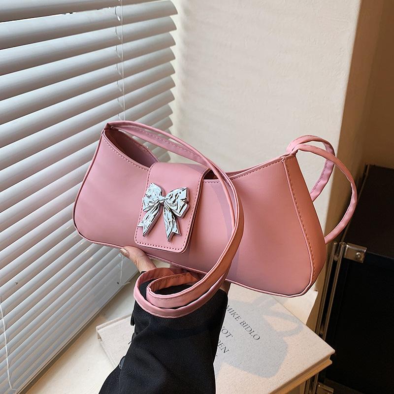 Женская персонализированная сумка-мессенджер 2024 года, летняя новая повседневная корейская версия, сумка-полумесяц, модная простая сумка через плечо с бантом