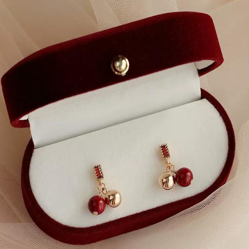 Модные серьги с красной фасолью, винтажные темпераментные красные серьги, ювелирные изделия