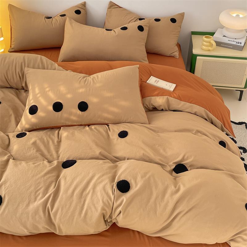 Комплект из четырех предметов из стираного хлопка, простыня, пододеяльник, трехкомпонентный пододеяльник