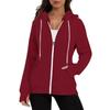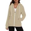 Женская модная однотонная толстовка с длинным рукавом, карманом, шнурком, капюшоном, молнией, отверстием для большого пальца