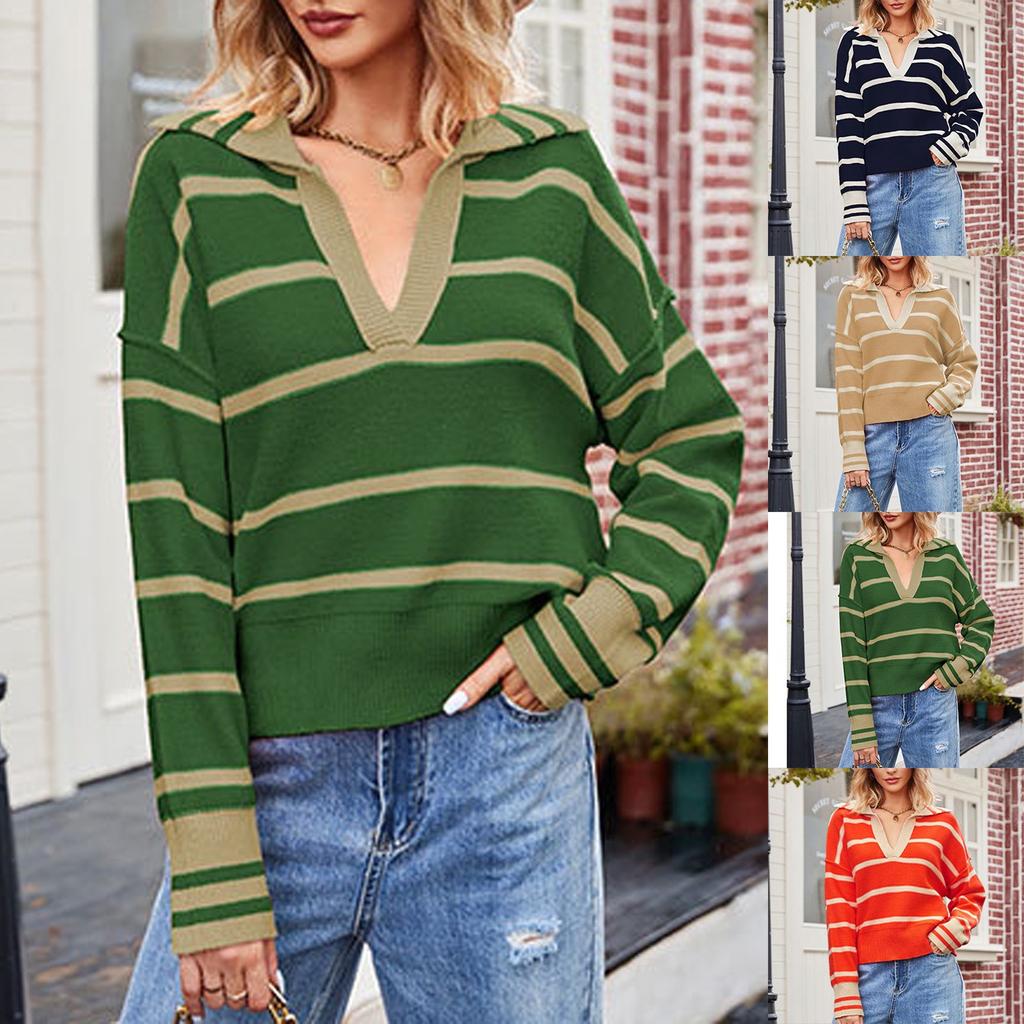 Женский свитер Модный пэчворк Полосатый лацкан Мешковатый свитер большого размера с длинными рукавами — купить товар онлайн с бесплатной доставкой по всему миру!