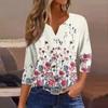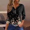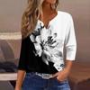 Женская футболка с принтом на пуговицах, рукав 3/4, вязаный свитер, повседневный, модный, на выходные, базовый, с V-образным вырезом, обычный топ