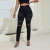 Джинсы с высокой талией и рваными краями для женщин, эластичные, приподнимающие ягодицы, потертые джинсы, обтягивающие джеггинсы для женщин