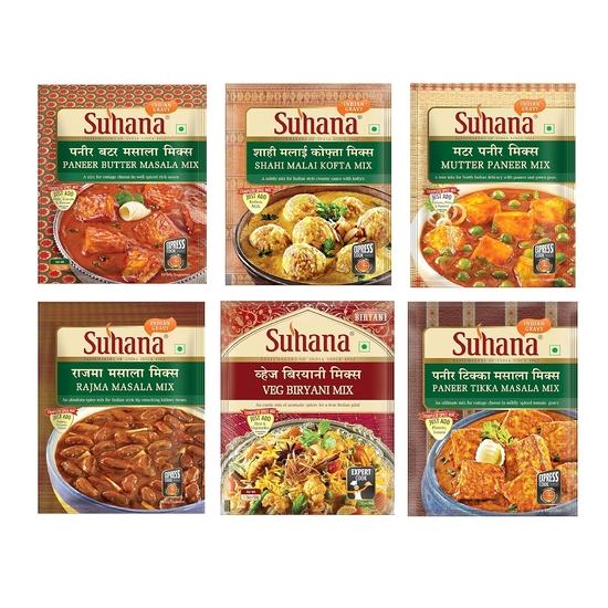 Смеси специй Сухана Вег - Панир Масло, Вег Бирьяни, Панир Тикка, Раджма Масала, Маттар Панир, Шахи Малай Кофта - Комбо из 6, легко готовить | 300 грамм