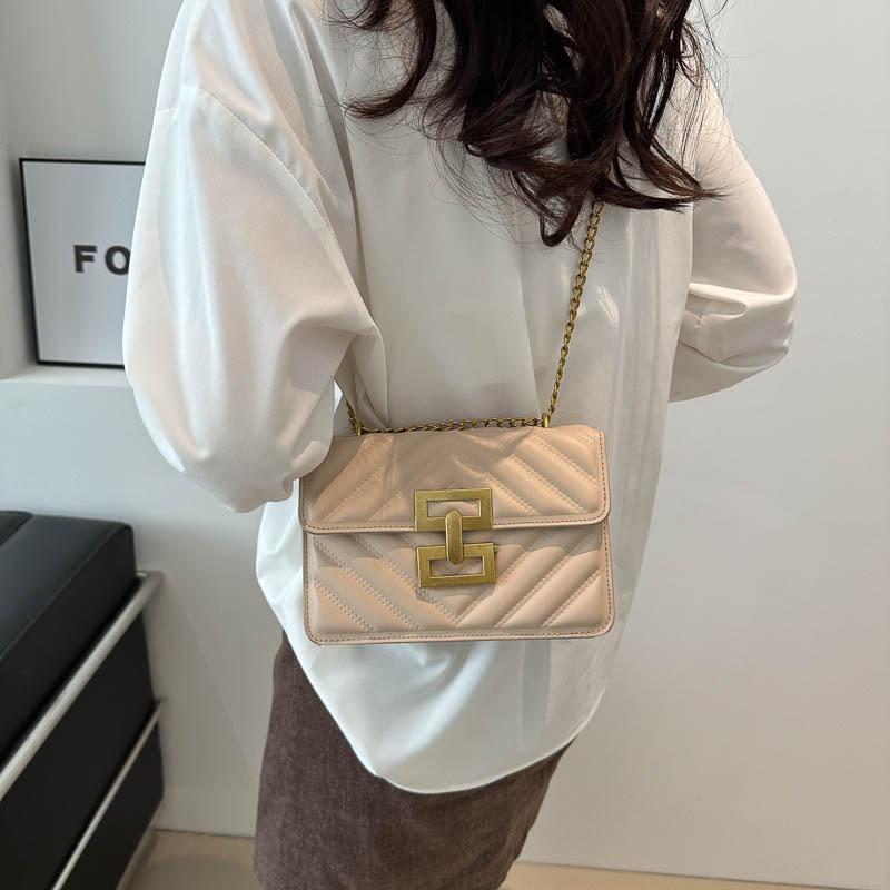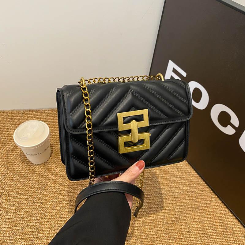 2024 New Trend Shoulder Bag European and American Retro Women's Bag Fashion Solid Color Small Square Bag Creative Lock Crossbody Bag Trend