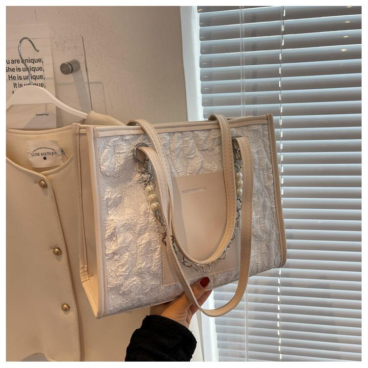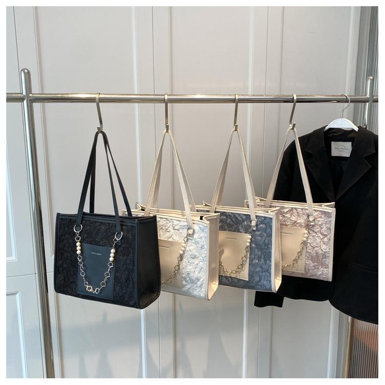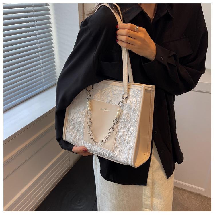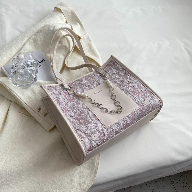 Популярная модная сумка женская 2024 новая зимняя большая сумка через плечо с жемчужной цепочкой нишевый дизайн сумка подмышкой