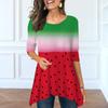 Женские весенние топы с круглым вырезом и принтом арбуза, модные футболки с длинными рукавами и неровным подолом