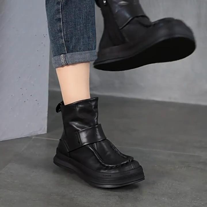 Johnature Винтажная обувь из натуральной кожи ручной работы, короткие ботинки с круглым носком, повседневная универсальная женская обувь