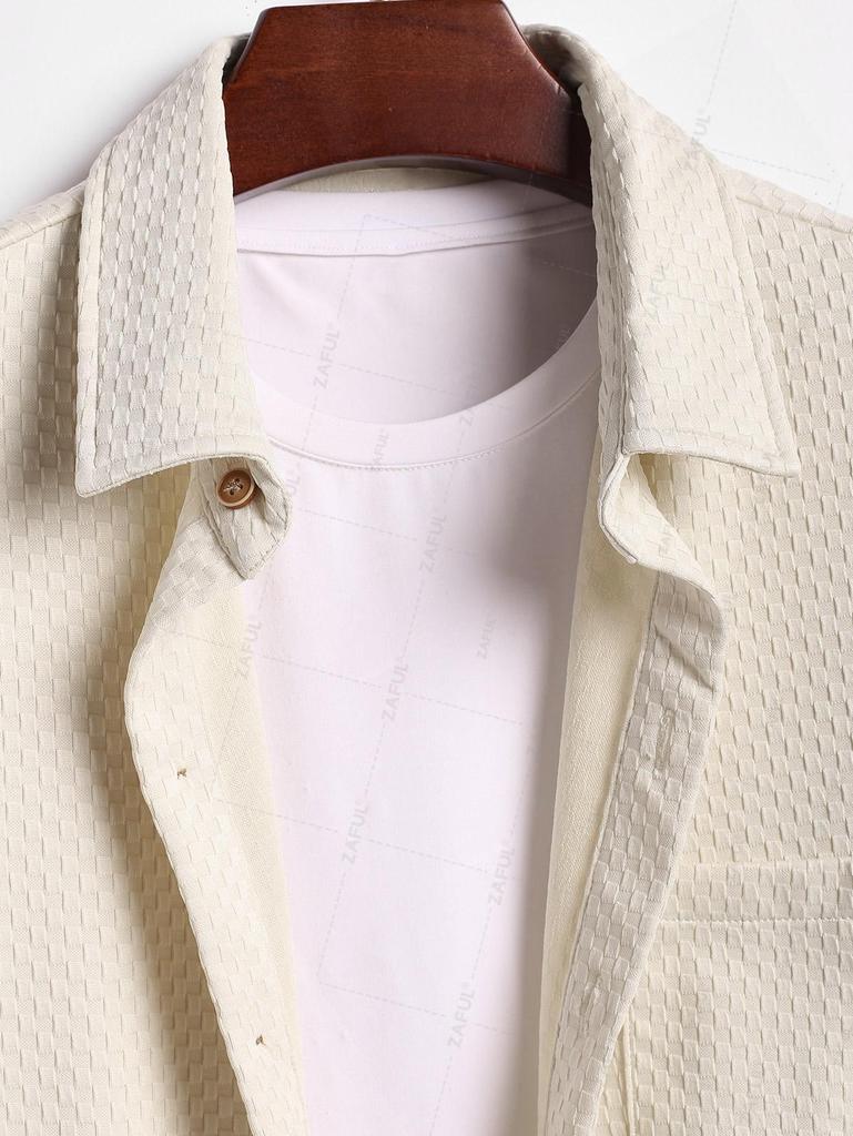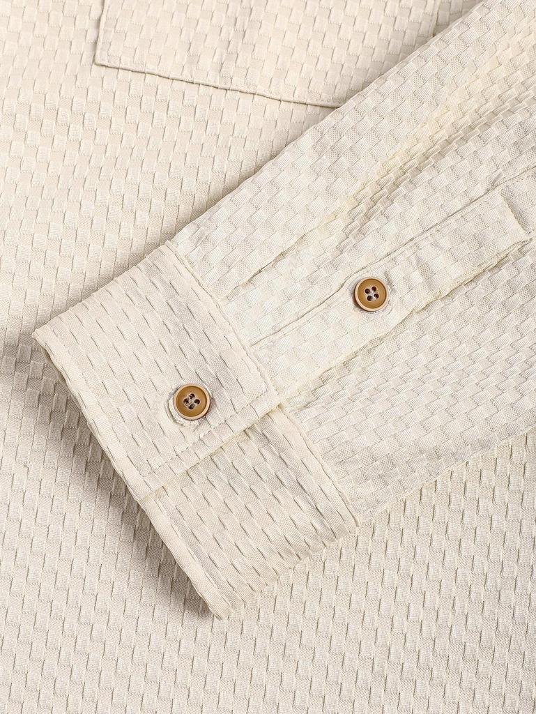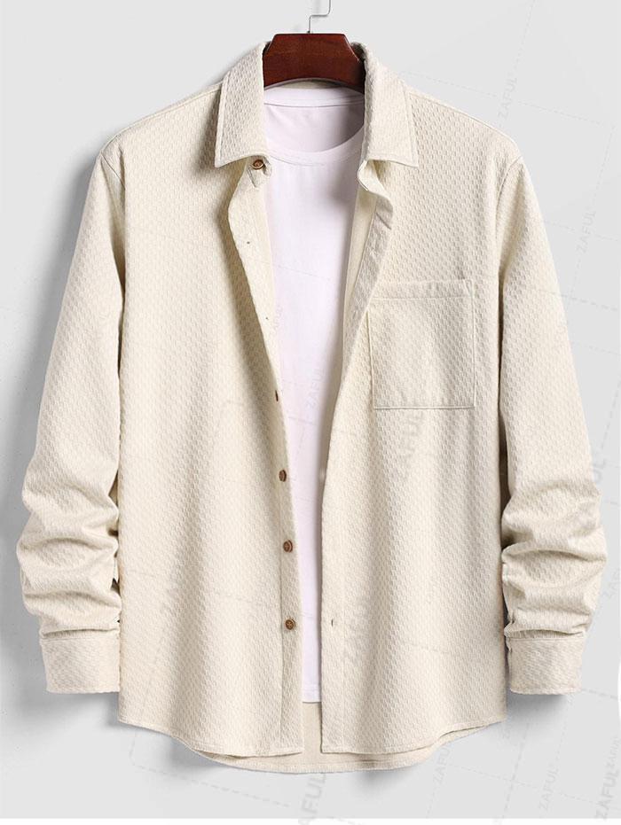 ZAFUL Мужская повседневная клетчатая сетка текстурированная трикотажная рубашка с передним карманом на пуговицах с длинными рукавами