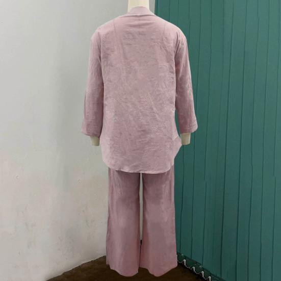 Материал: Этот стильный костюм-двойка изготовлен из дышащей смеси хлопка и льна, обеспечивающей комфорт и стиль весной, летом и осенью.. Свободный и удобный крой делает его идеальным для различных случаев.
