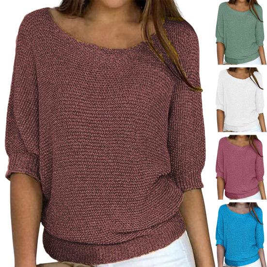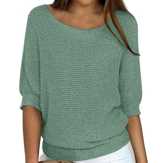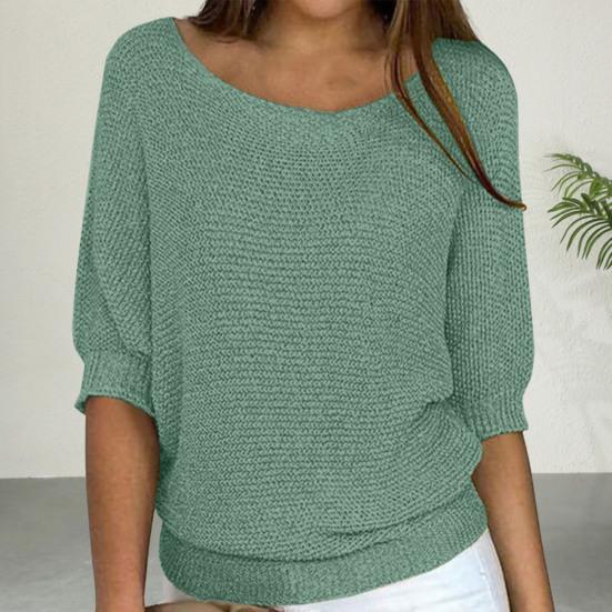 Этот однотонный свитер с круглым вырезом и рукавами три четверти идеально подходит для шикарного и элегантного образа..