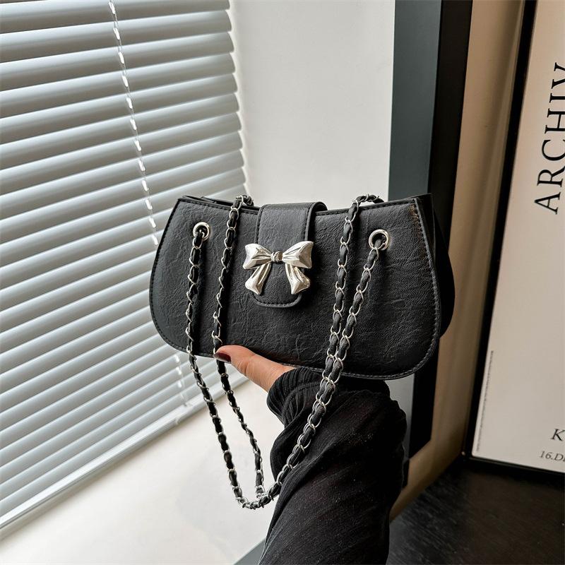 Модная корейская версия однотонная сумка подмышку, сумка-бант в иностранном стиле, женская новая красивая сумка-мессенджер на цепочке 2024