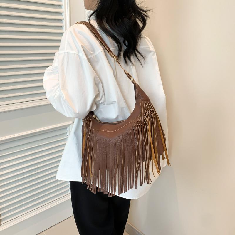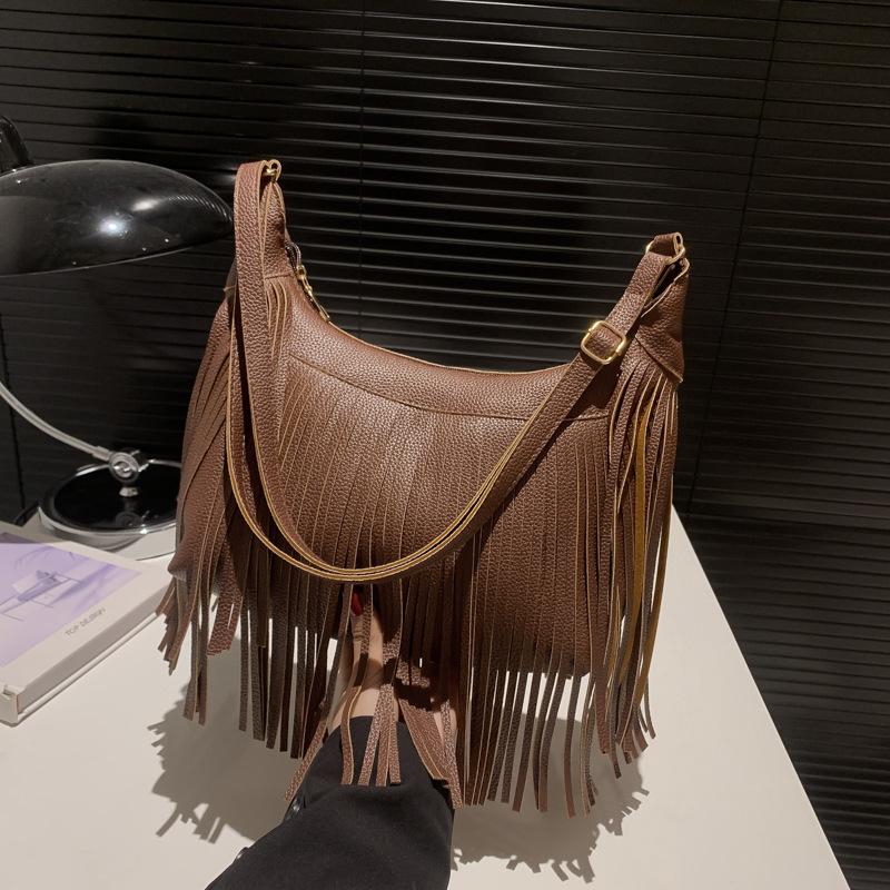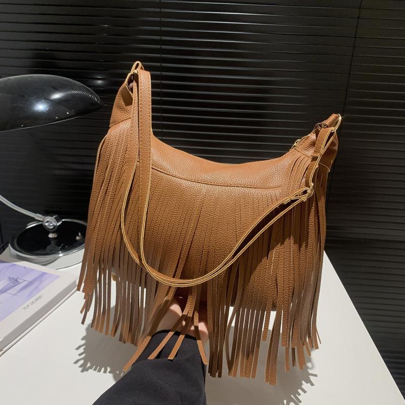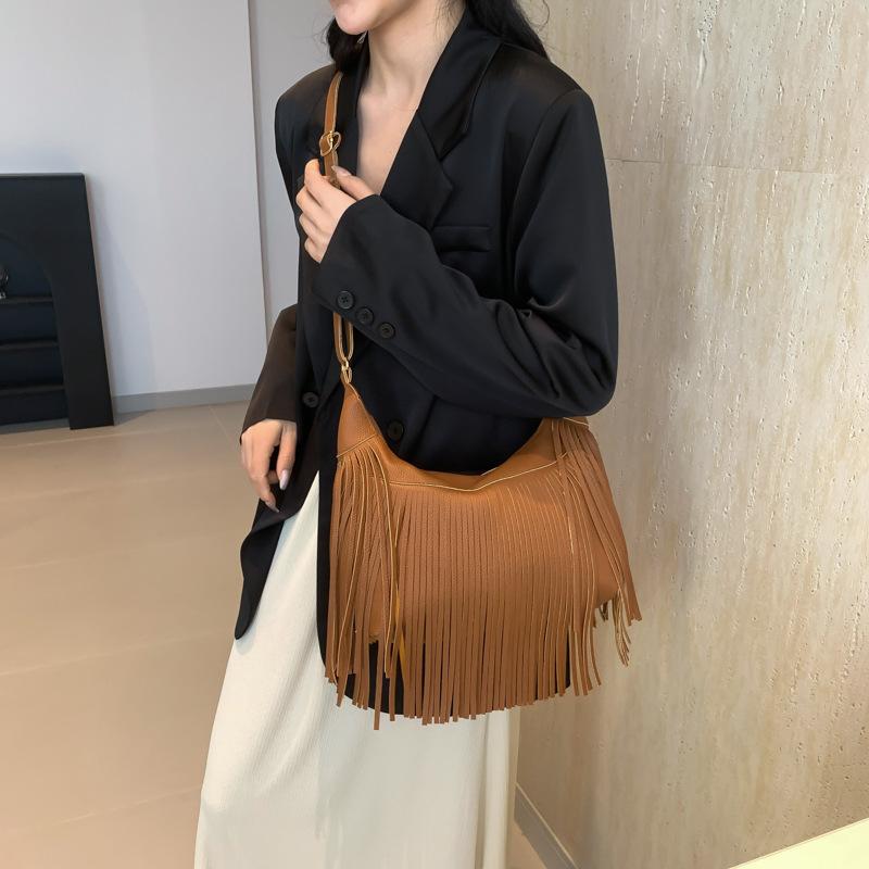 Американская личность дизайн чувство нишевая ретро сумка с бахромой женская сумка 2024 весна искусственная замша сумка-мессенджер нишевая сумка через плечо