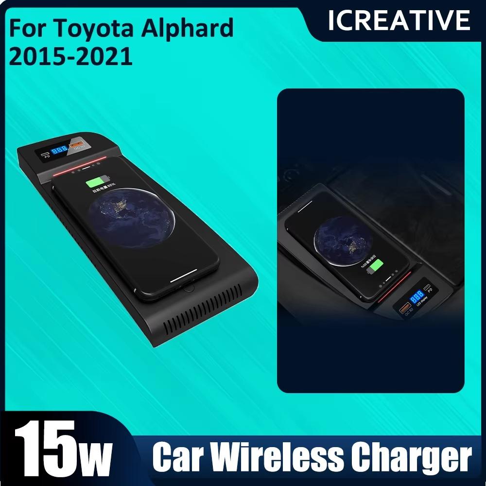 Индукционная зарядная панель QI 15 Вт для телефона iPhone, беспроводная зарядка, автомобильные аксессуары для Toyota Alphard 2015 2016 2017 2018-2021