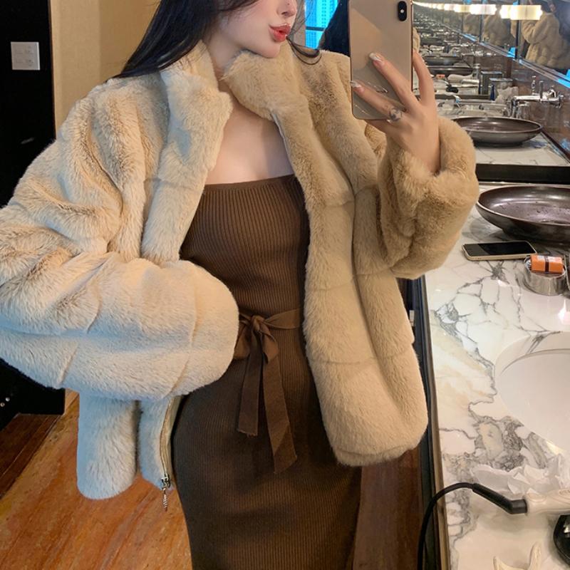 Франция Элегантный меховой теплый короткий пальто женский зимняя флисовая винтажная куртка со стоячим воротником шерстяная корейская модная дизайнерская одежда 2024 Новинка