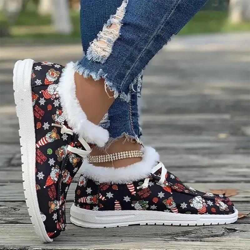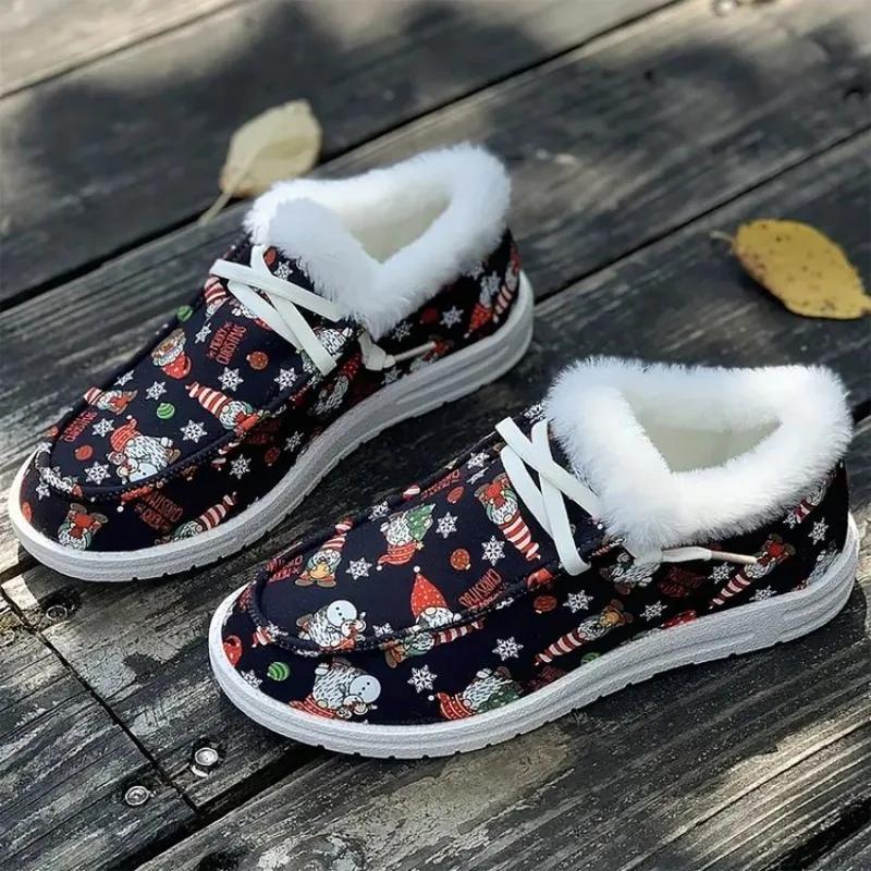 Женские сапоги, новые рождественские цветные элементы, принтованные туфли для женщин, нескользящие утолщенные кроссовки, удобные низкие теплые сапоги для женщин