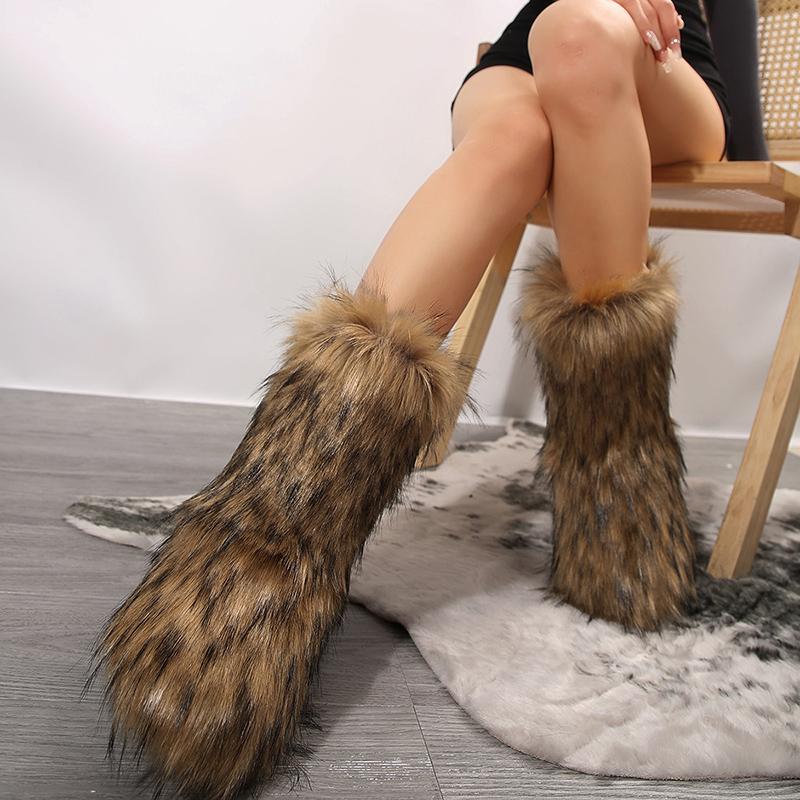 Зимние роскошные меховые сапоги до середины икры женские новые теплые зимние сапоги из искусственного меха женские утепленные плюшевые пушистые сапоги до середины икры женские