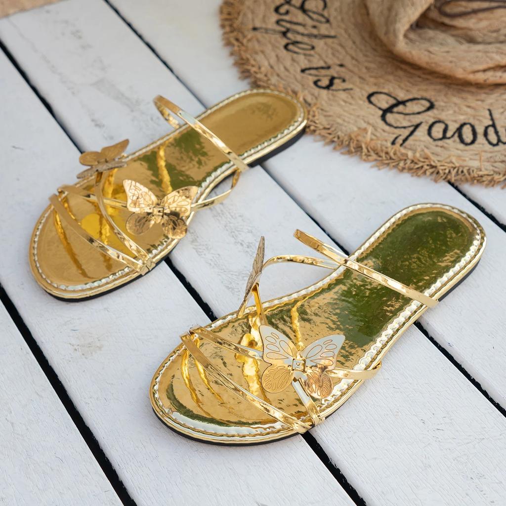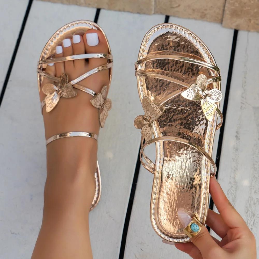 Дизайнерские сандалии на плоской подошве с носком-бабочкой для женщин 2024 г. Новые женские модные роскошные пляжные тапочки Нескользящие сандалии Тапочки