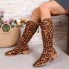 Сапоги до колена с леопардовым принтом, женские, осень-зима, с острым носком, на среднем каблуке, длинные, Botas Mujer, модные, с застежкой-молнией сзади, на квадратном каблуке