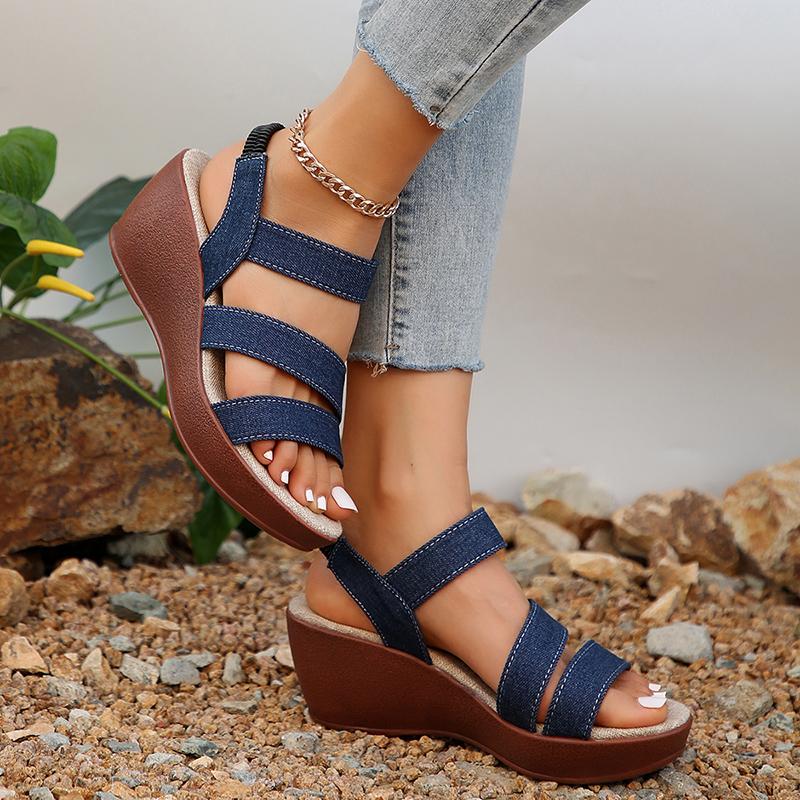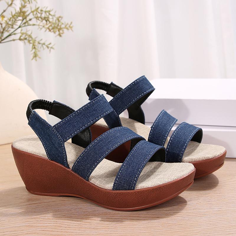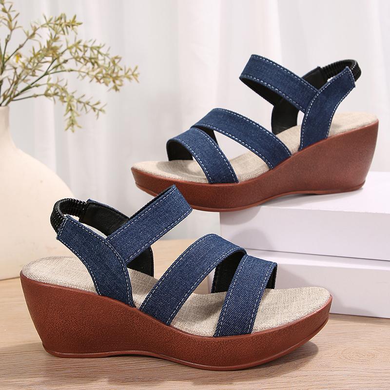 Модные джинсовые босоножки на высоком каблуке для женщин, босоножки на платформе с эластичной резинкой, женские легкие повседневные летние гладиаторские туфли 2024 года