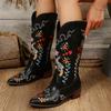 Модные женские ковбойские сапоги с вышивкой, с острым носком и квадратным каблуком, до середины голени, женские вышитые сапоги из искусственной кожи