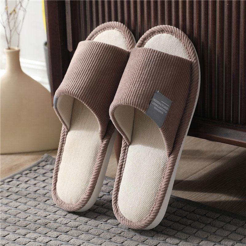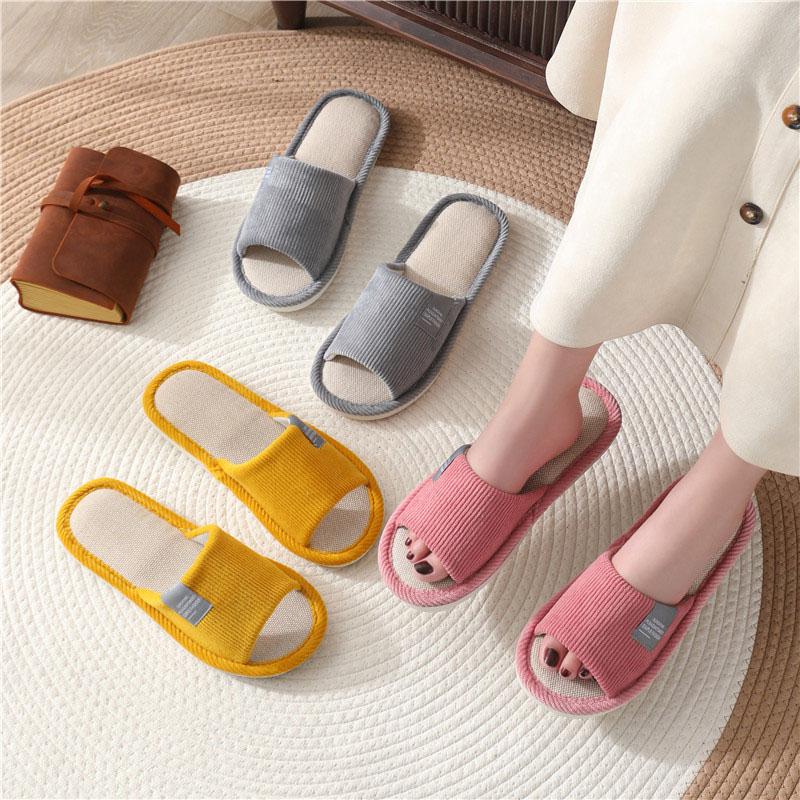 Легкие домашние льняные тапочки, женские парные домашние домашние нескользящие дышащие шлепанцы с мягкой подошвой, осенние туфли в японском стиле