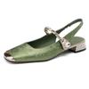 Модные женские босоножки с принтом на низком каблуке 2024 года, летние туфли с квадратным носком и жемчугом, туфли-лодочки с открытым носком и толстым каблуком, женские босоножки