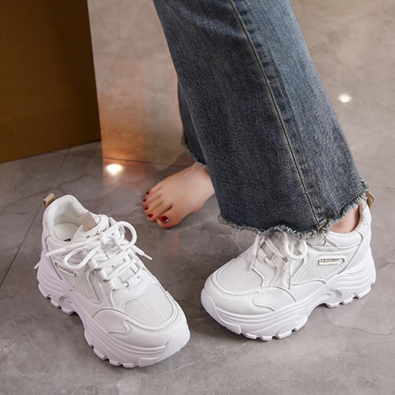 Rimocy/женские кроссовки на массивной платформе, осень 2024, спортивная обувь с дышащей сеткой на толстой подошве, женская нескользящая повседневная обувь на шнуровке