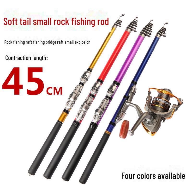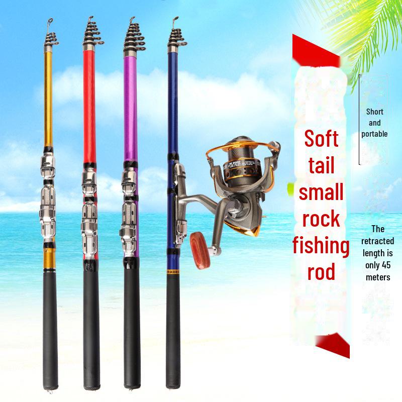 Телескопическое удилище из стекловолокна с выдвижным соединением и мягким направляющим кольцом на кончике, идеально подходит для малых скальных и морских рыбалок.