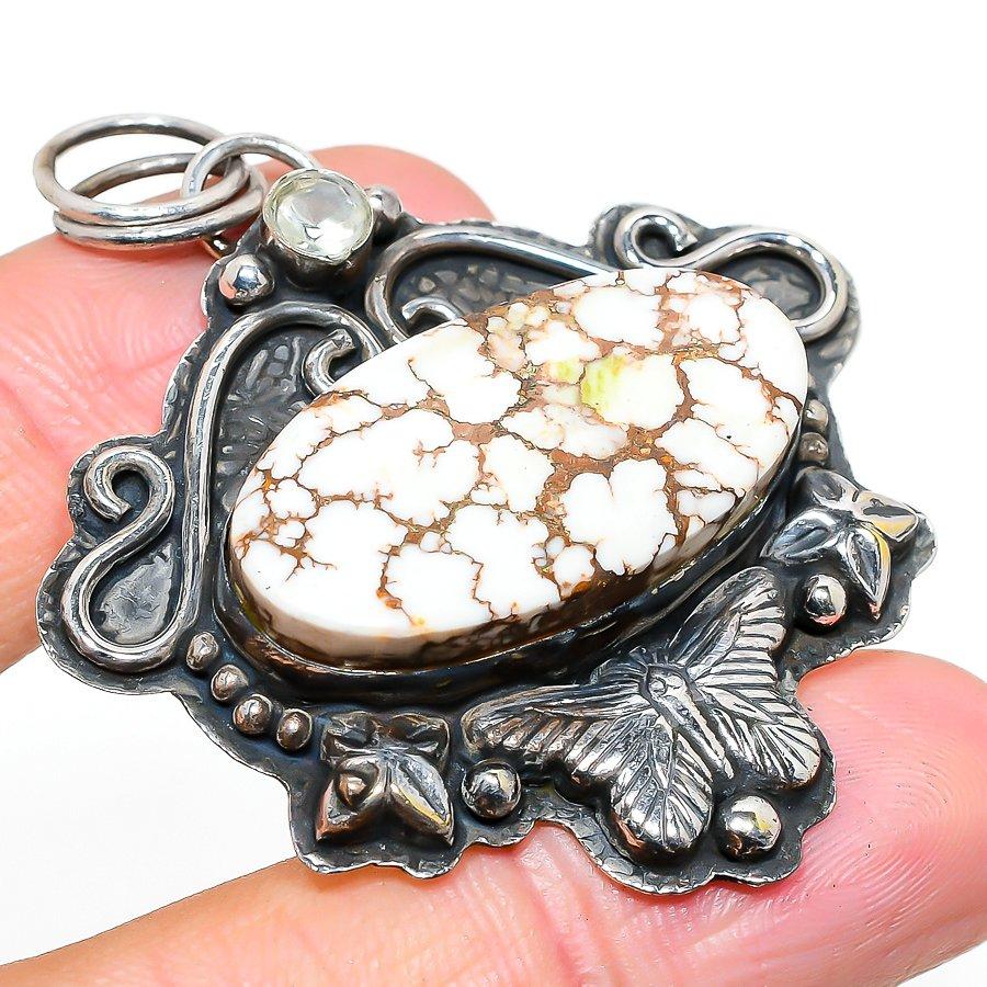 Natural Wild Horse, White Topaz Gemstone 925 Sterling Silver Pendant 2.29" S1t06