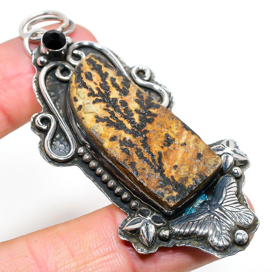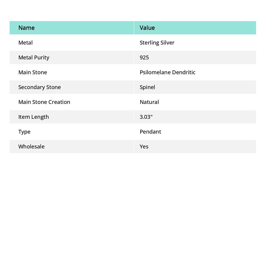Подвеска из натурального псиломелана, шпинели, стерлингового серебра 925 пробы, 3,03 дюйма