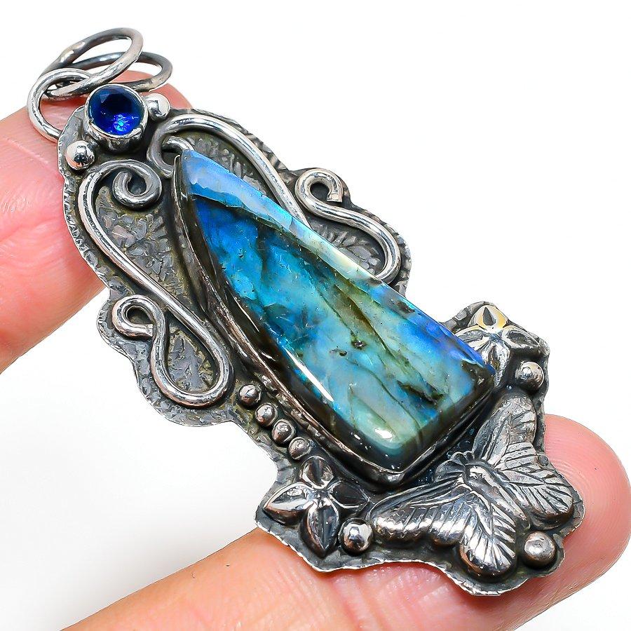 Натуральный лабрадорит, драгоценный камень голубой топаз, кулон из стерлингового серебра 925 пробы, 2,88 дюйма