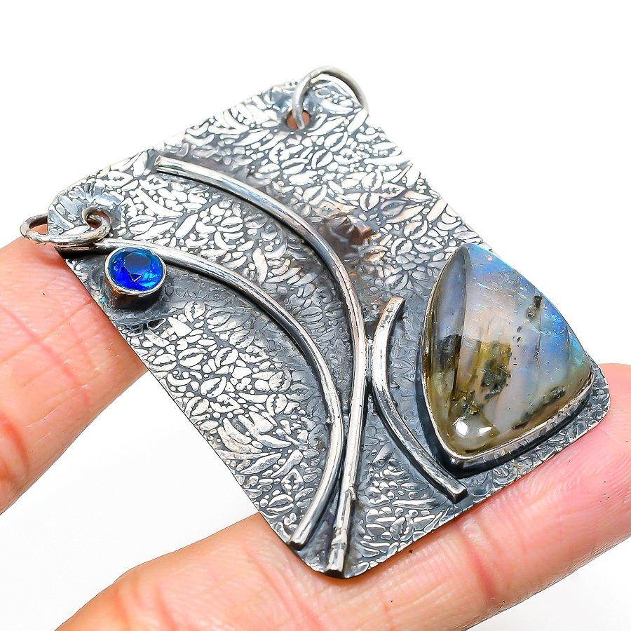 Подвеска из серебра 925 пробы с натуральным лабрадоритом и голубым топазом 2,21 дюйма