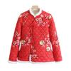 Женская осенне-зимняя куртка на хлопковой подкладке в китайском стиле, пальто на пуговицах с цветочным узором, верхняя одежда на утолщенной флисовой подкладке