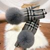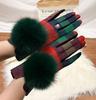 Женские кашемировые перчатки, женские перчатки с сенсорным экраном, пушистый лисьий мех, клетчатые шерстяные перчатки для вождения, женские варежки S2267