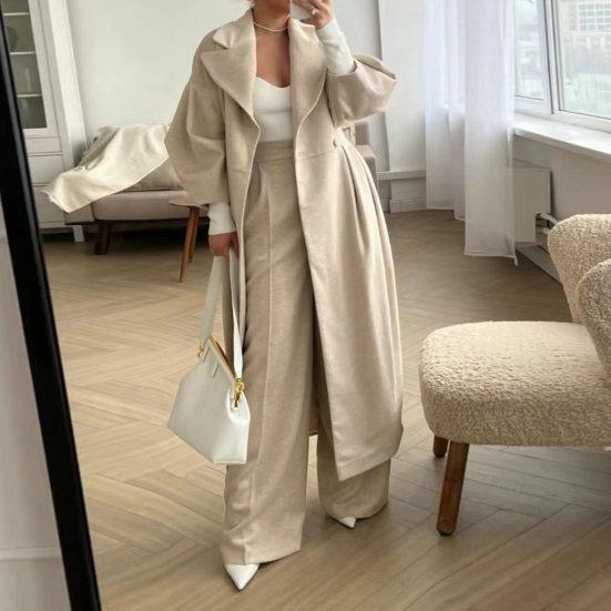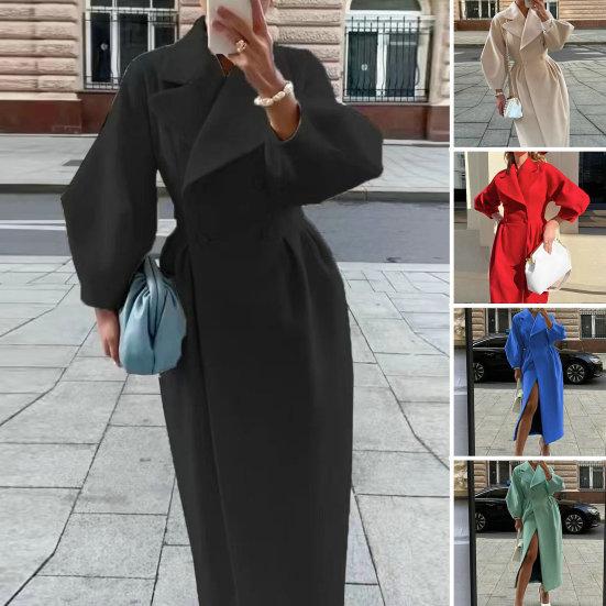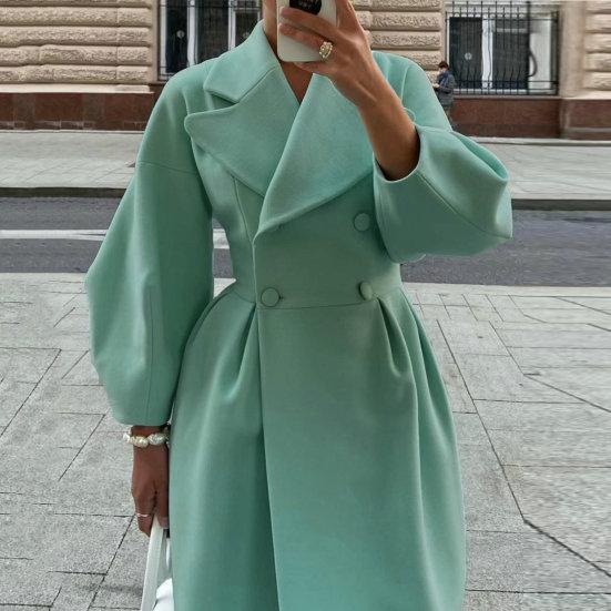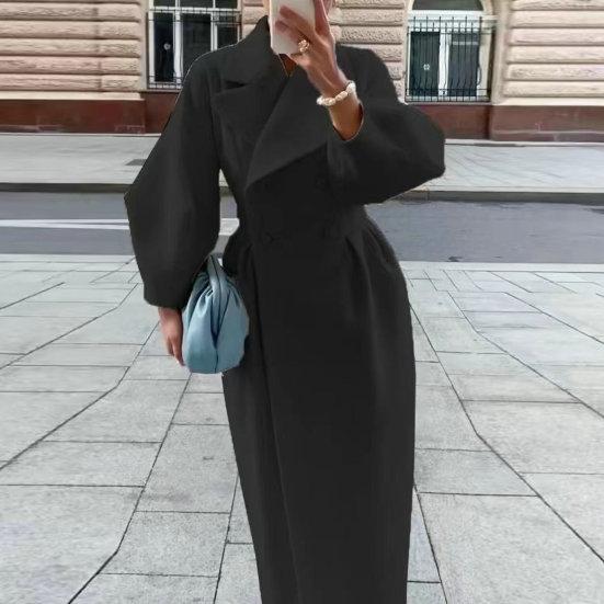 Женское шерстяное пальто, двубортное винтажное пальто с рукавами-фонариками, осенне-зимнее пальто с отложным воротником, длинная ветровка, уличная одежда