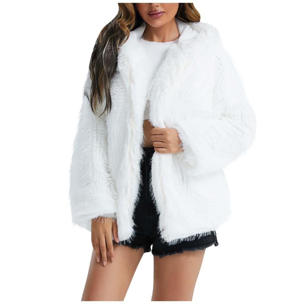 Женская осень и зима Сплошной цвет с капюшоном Плюшевая куртка-молния Особенности: