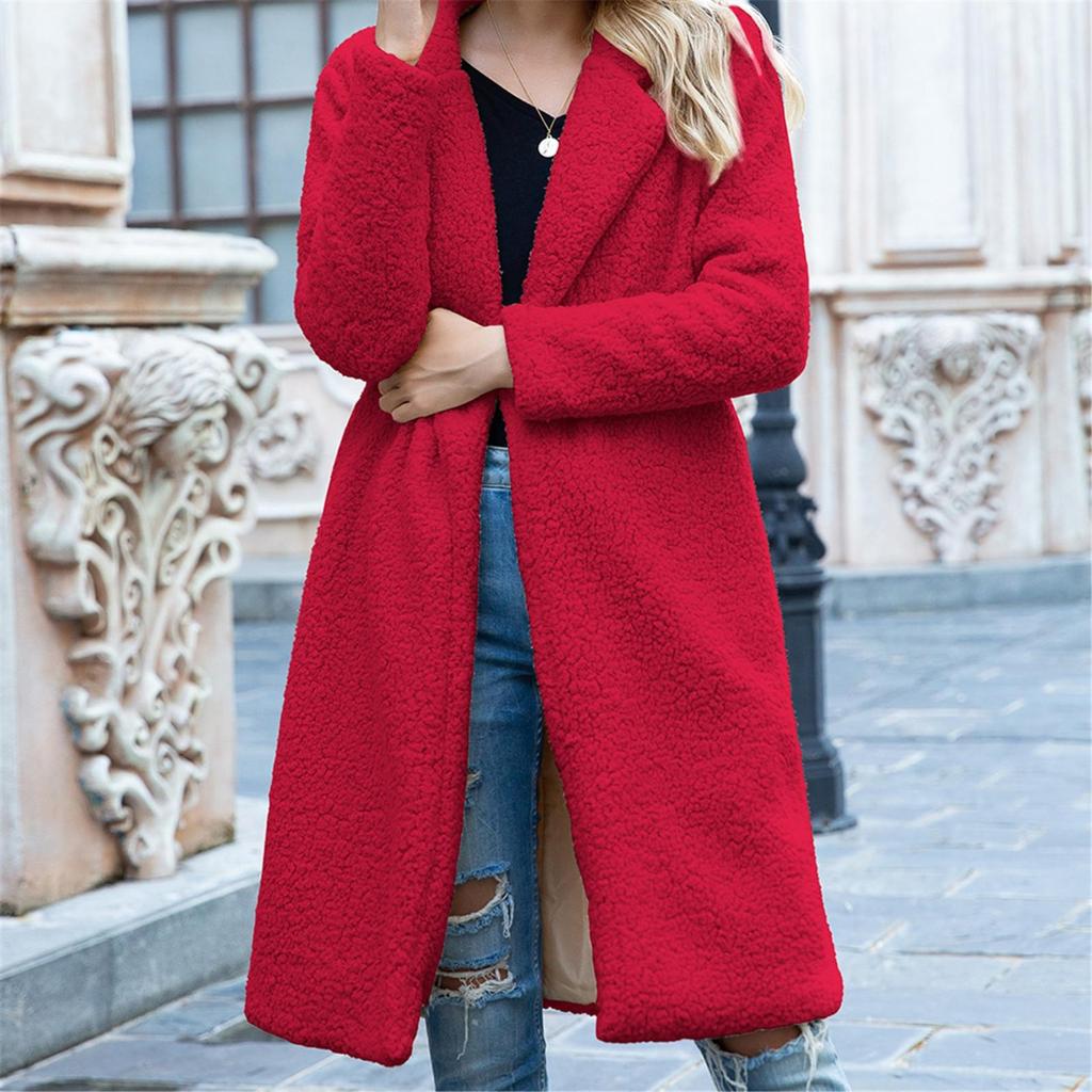 Женская мода однотонное бархатное пальто средней длины с длинными рукавами и ягненком