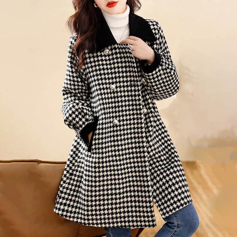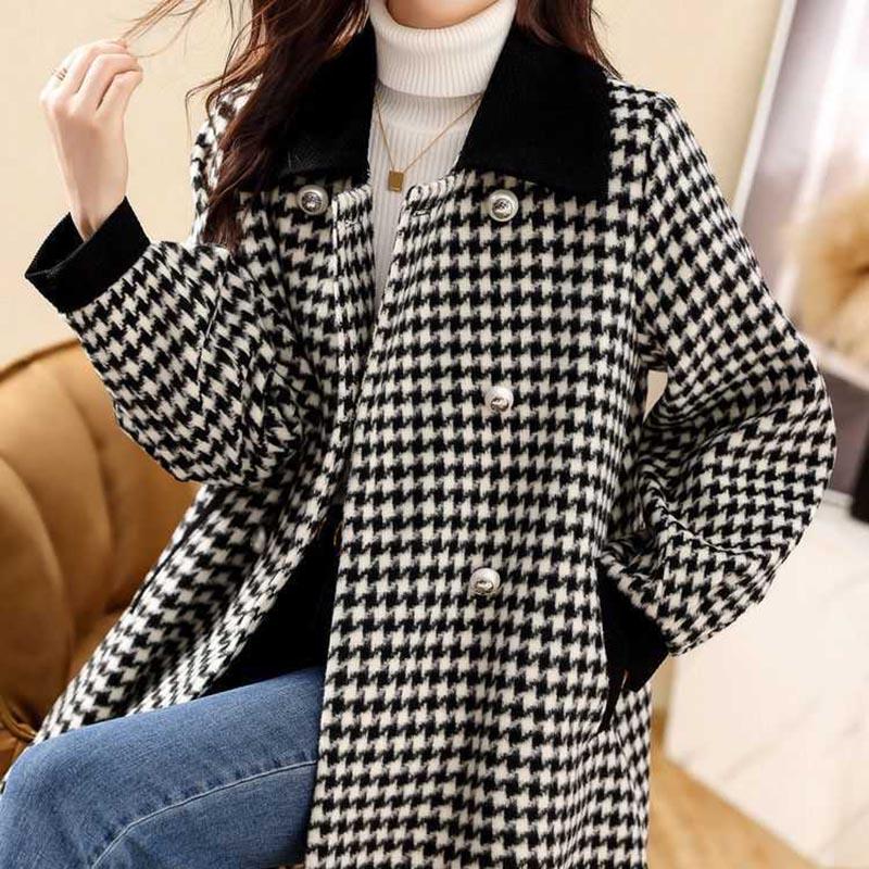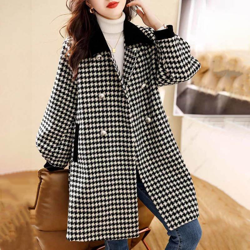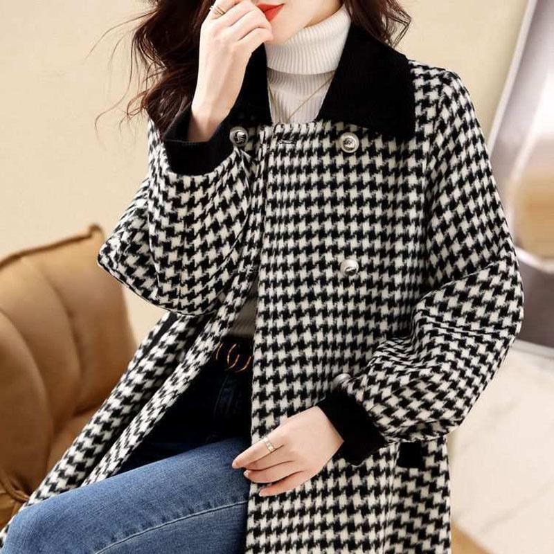 Хлопковая куртка, женская осенне-зимняя клетчатая твидовая утолщенная куртка средней длины, удобное повседневное универсальное пальто