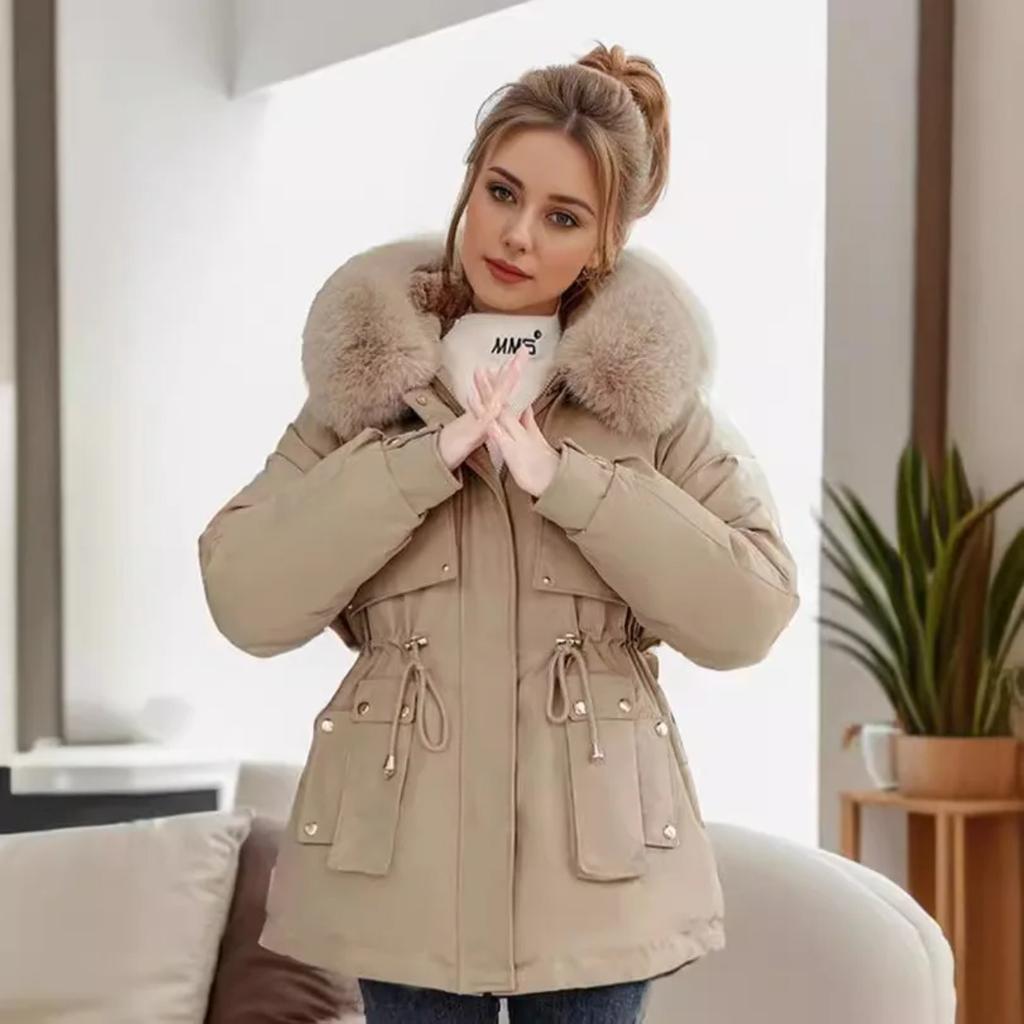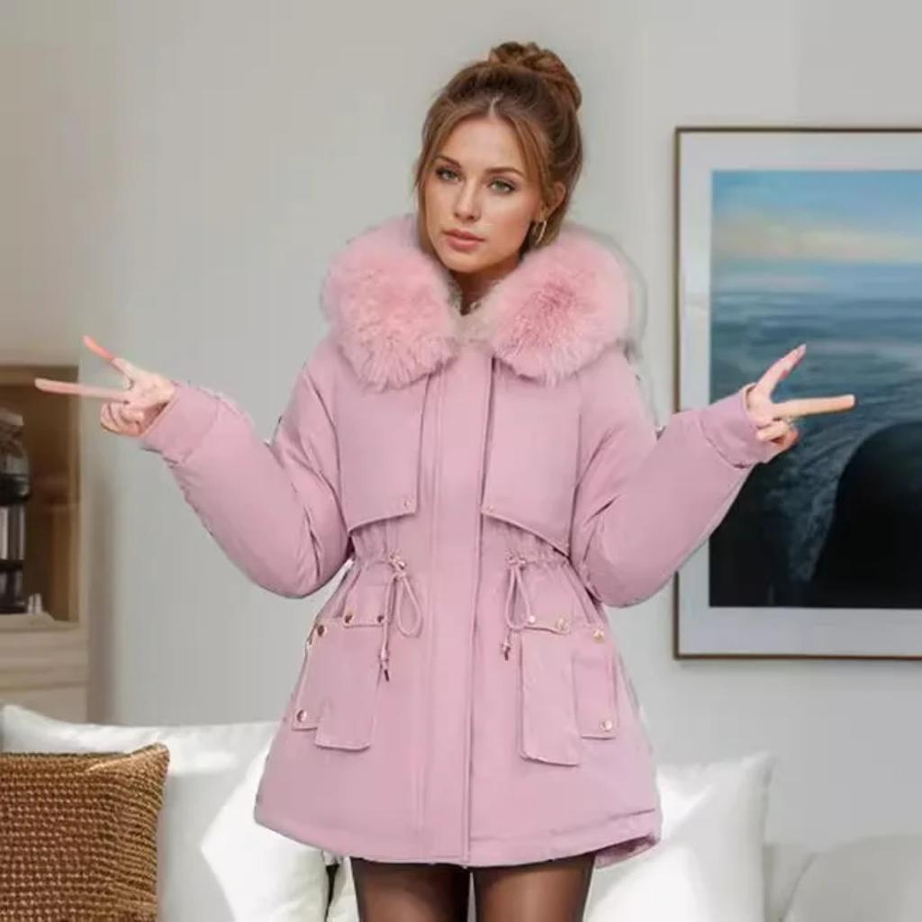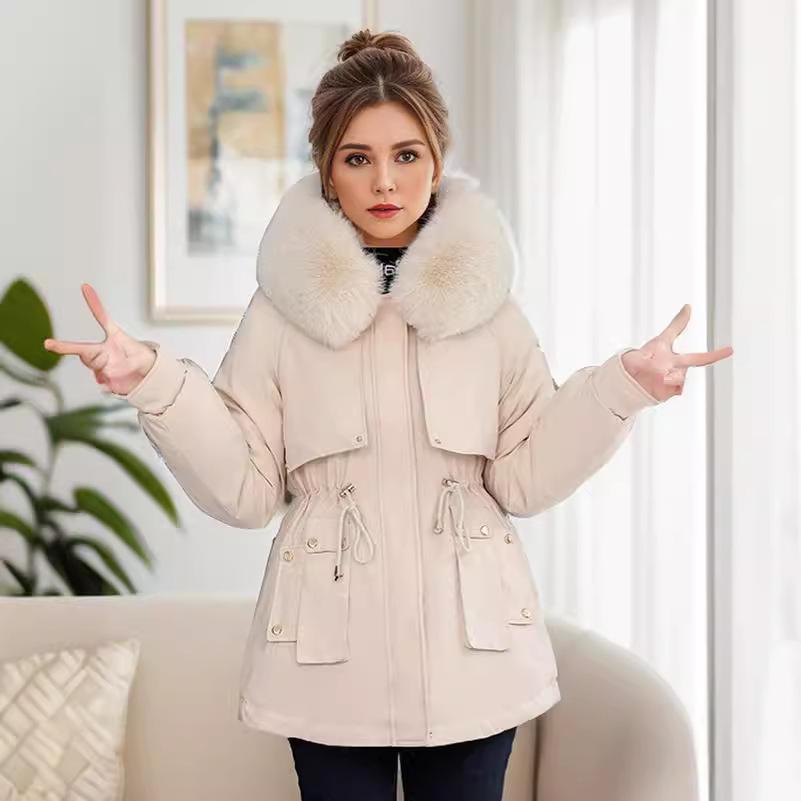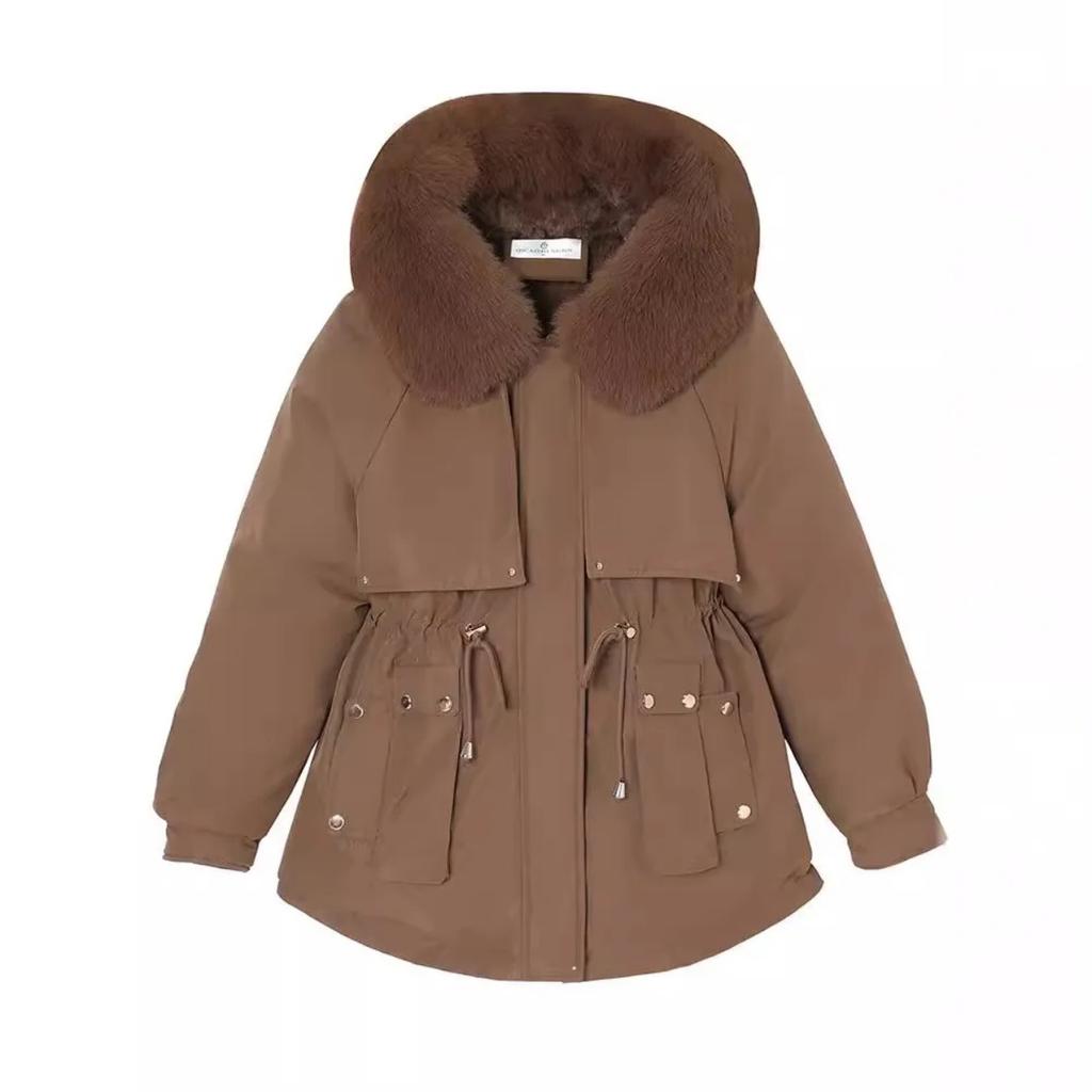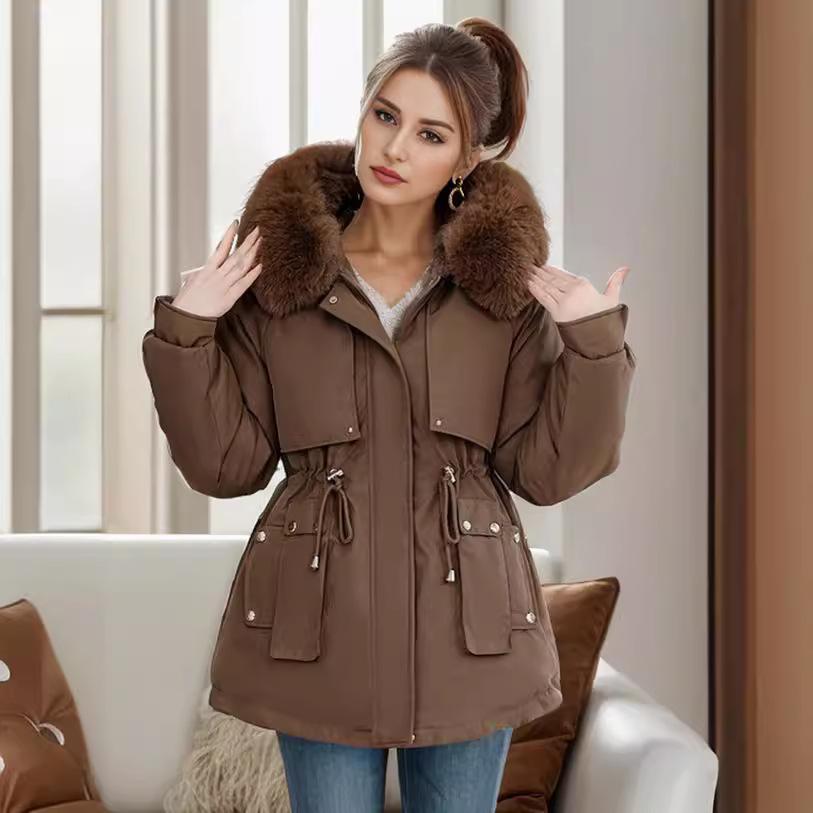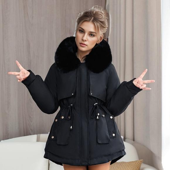 YJKDYK 2024 зимняя женская стеганая куртка с меховым воротником, теплые парки, пальто, топы, женская хлопковая куртка с завязками на талии