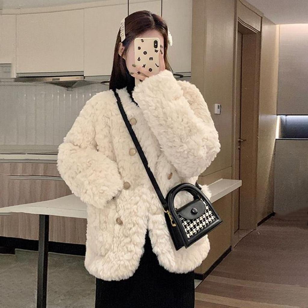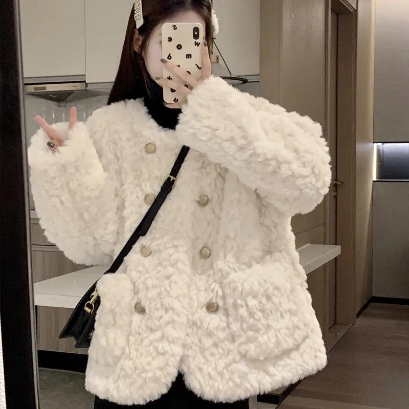 Куртка женская осенняя женская короткая свободная утолщенная удобная верхняя однотонная плюшевая куртка на пуговицах