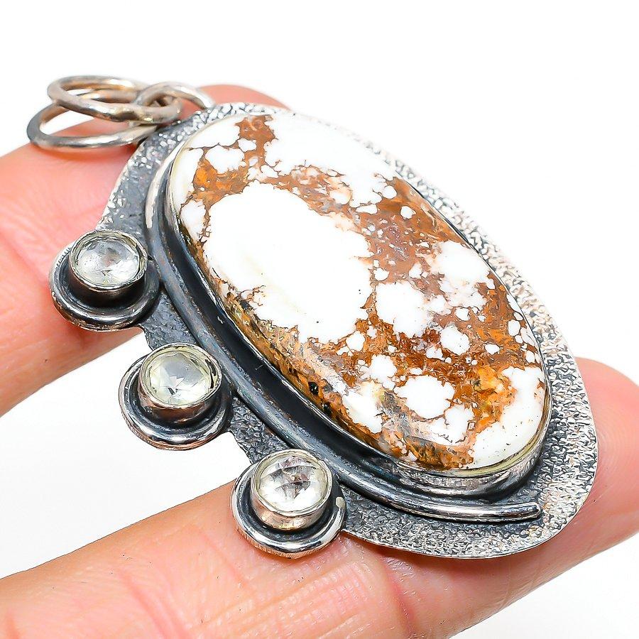 Подвеска из стерлингового серебра 925 пробы с натуральным диким конем и белым топазом, 2,36 дюйма
