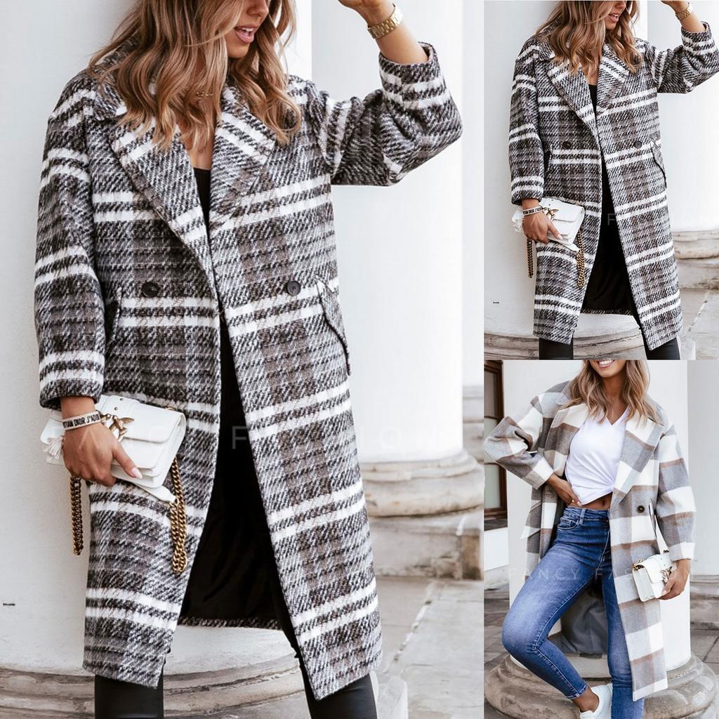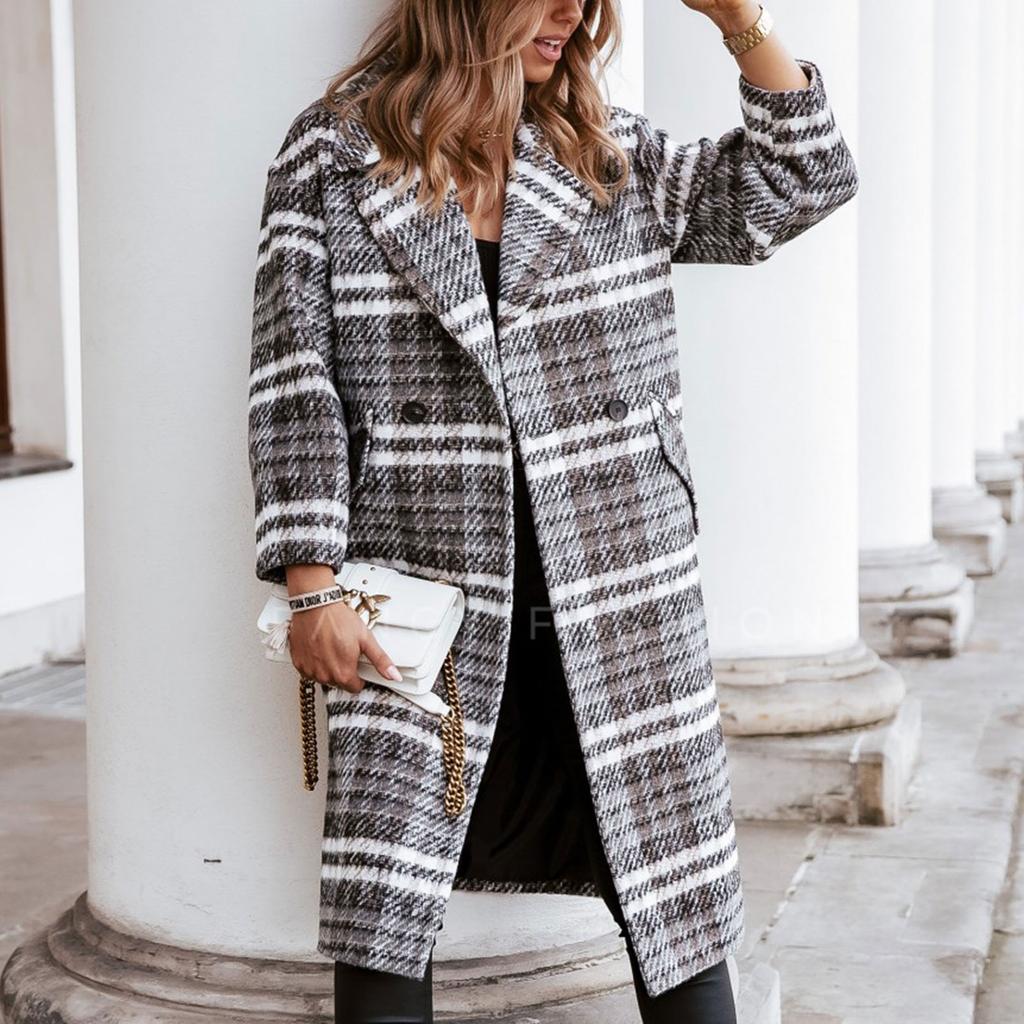 Женское осеннее и зимнее повседневное утепленное теплое пальто средней длины с длинными рукавами