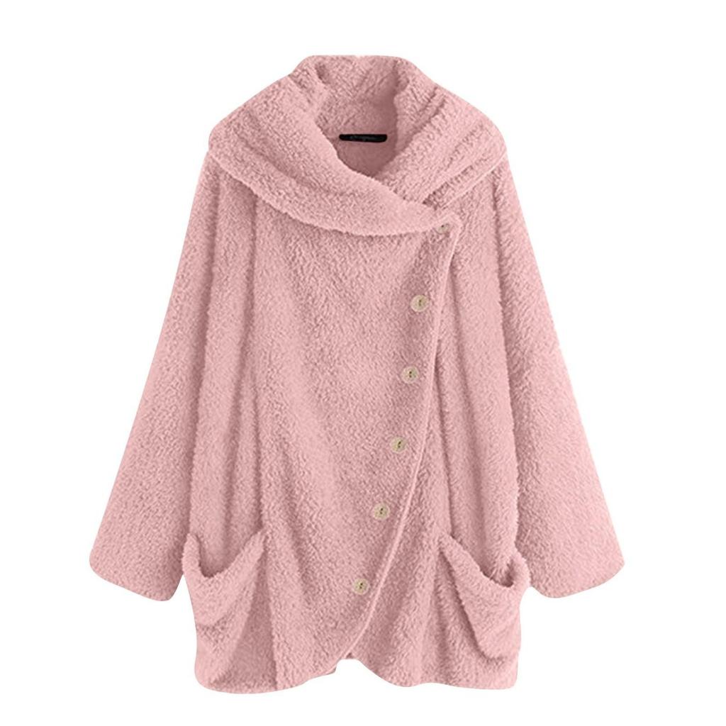 Женская модная повседневная плюшевая однотонная куртка с высоким воротником и длинными рукавами и карманами на пуговицах