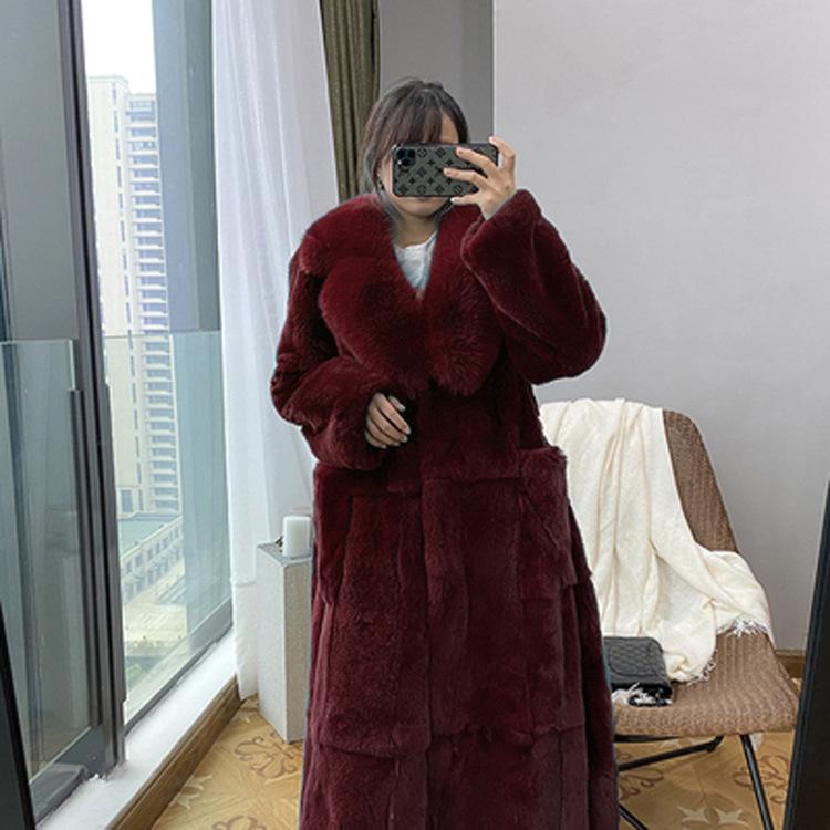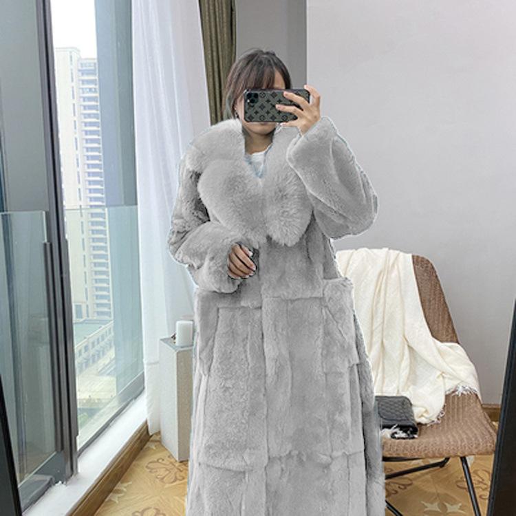 2024 зимняя женская одежда с поясом, большой воротник из меха лисы, длинное пальто из искусственного меха, женская плюшевая куртка, пушистая верхняя одежда с поясом, толстое теплое пальто больших размеров
